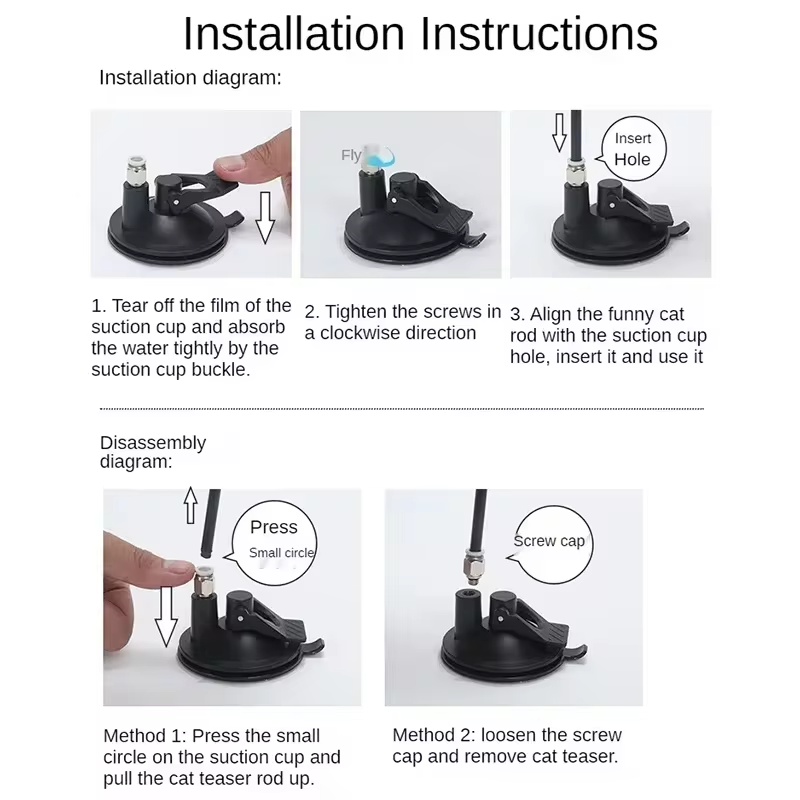- Base à ventouse : Fixez facilement le jouet sur toute surface plane, permettant à votre chat de jouer de manière autonome sans votre aide.
